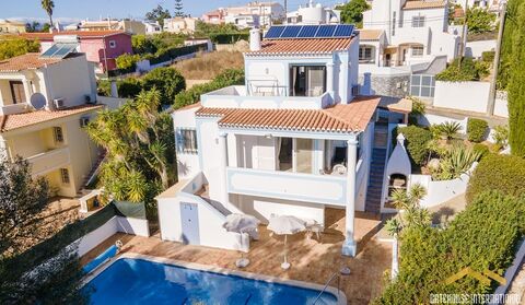 This 180 m2 detached villa is set on a 735 m2 plot with 3 bedrooms, 3 bathrooms, a heated swimming pool and a garage. The property has two gated entrances and features an entrance hall in open plan with a living room with dining area and fireplace, a fully renovated kitchen with modern appliances, opening onto a patio area with Al Fresco dining space, two guest bedrooms each with fitted wardrobes, one en-suite, a family bathroom, a master bedroom occupies the entire top floor with an en-suite bathroom and access to a sunny private balcony, a single-car garage, a 5 x 10-meter heated swimming pool, terraces, built-in barbecue and Al Fresco dining areas, balcony, a driveway with ample parking space, and a fully enclosed garden with a range of fruit trees and Mediterranean vegetation. The lower level of the property is dedicated to leisure and outdoor living. Layout Entrance hall Open-plan living and dining area with fireplace Modern fitted kitchen Three double bedrooms and three bathrooms Multi-purpose basement, ideal for a gym, games room, studio, or home cinema Outside Private heated swimming pool Sun terraces and an Al Fresco dining area BBQ zones Single-car garage, ample parking Fully enclosed garden Location Nestled within five minutes of the heart of Carvoeiro, a short distance from all amenities and the beach. At a glance 180 m2 build, 735 m2 plot Three bedrooms, three bathrooms Pool, terraces, Al Fresco dining, BBQ Single-car garage, parking