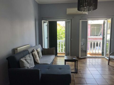 Apartment on a second floor in an area 109sqms in Zakynthos, in the center of the city, for sale. The apartment consists of living room - kitchen - dining room, 2 bedrooms and two bathrooms. The apartment is recently renovated and includes 2 a/c, aluminum frames, installations for radiators, one veranda in the front and one big veranda, which they offer a nice view to the city and to the mountain. Distances: 90 meters from the sea, 3 km from the airport, very close to schools, stores and shops.