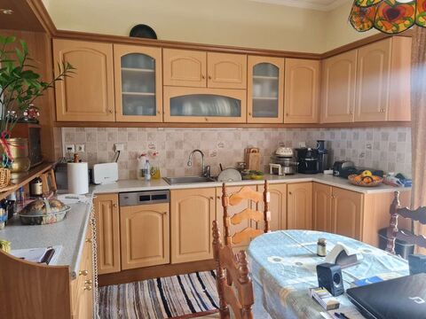 Detached house in Zakynthos with a total area of 240sqm, with a wonderful sea view, for sale. The first and second floors are a maisonette of 150sqm which includes a living room, kitchen and a bathroom on the 1st floor and on the 2nd floor 3 bedrooms and a bathroom as well as terraces with a sea view, while on the ground floor there is an unfinished warehouse of about 90sqm that can be configured in an apartment. The house has verandas around the perimeter with a sea view, independent heating and aluminum windows with screens. The plot is fenced, within a settlement with an area of 1,469sqm, fenced and full of olive trees and has a remaining construction area of 140 square meters. Inside there is a warehouse, barbecue and parking. Distances: 1,200m from the sea, 600m from shops and supermarkets, 8km from the city and 10km from the airport.
