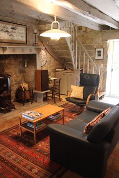 Ground = 83 m2 living room/fitted kitchen (wall and base units, hob, 2 electric ovens, sink, dishwasher, fridge/freezer) with flding patio doors (concertina style) opening onto a 60 m2 courtyard with swimming pool + bedroom of 8.5 m2 + 4.3 m2 shower room (WC, washbasin, shower).