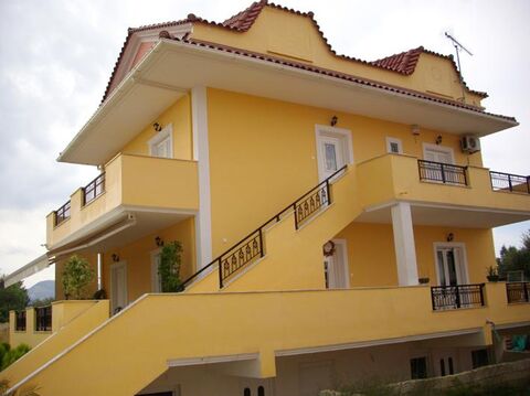 Building 345 m2 inside plot 550 m2, in Zakynthos, that is constituted 1) by autonomous undergrounds residence 105 m2 2) from two floor residence with loft 240 m2. The ground floor includes lounge with fireplace, kitchen, bathroom, 1 bedroom. The first floor includes 3 bedrooms, the one with fireplace, bathroom, room wardrobe. The loft includes 3 bedrooms, bathroom, room wardrobe. The building was manufactured in 2005. It has central heating, air condision, water reservoir. Price of sale 380.000 €. Total bedrooms 7, bathrooms 3. The commercial value of the property is 700.000 €