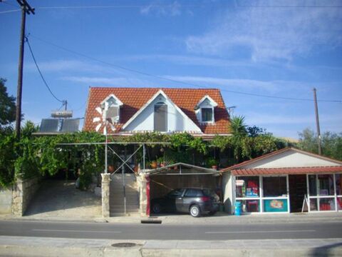 On the national road Zakynthos - Volimes in Gaitani in very commercial point plot 650 m2 inside drawing, that has residence maisonette with loft 140 m2.The residence includes big lounge on a level with the ground with fireplace, cooker, bathroom and 2 bedrooms, the loft communicates with internal scale and includes 2 bedrooms, 1 livingroom cooker and 1 wc. Ground floor has front too much big veranda with grapes and flowers, while in the back side of house exists very big garden and auxiliary spaces. In the down side of house it has closed garage. Year of manufacture 1980. The plot is suitable because that it is on the street with the bigger movement for construction of commercial real estate.