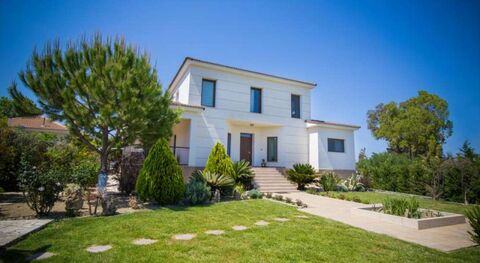 Zakynthos. Laganas. Luxury villa 210sqm, in a beautiful and quiet location facing the region, 3 km from the sandy beach and 6 km from the town of Zakynthos. The villa is located within 1.130sqm plot, fully landscaped with grass, flowers, garden fruit and vegetables, parking, gazebo and BBQ area.