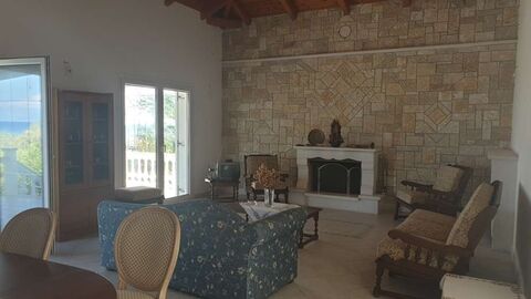 Zakynthos. Seaside villa of 203 sqm right on the beach, within a 1000 sqm plot in one of the most beautiful and quiet areas of the island, for sale. Located inside the village plans, the villa has a living room with a fireplace, a fully equipped kitchen, 3 bedrooms, 2 bathrooms and a storage room. Also, it has a semi-ground floor apartment with 2 bedrooms, a kitchen and a bathroom. It also has heating, drilling, barbecue facilities and a garden with gazebo and dining area. It also has its own private beach with shallow water. Distances: 8 km from Zakynthos Town and 10 km from the airport.