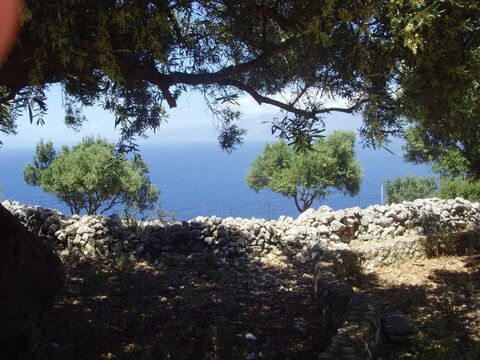 Located in Korithi, Volimes, this 4,113 sqm plot has excellent sea views and views of Kefalonia. The land is level and contains olive trees. A building licence was issued in 2006 for a two-storey house with a basement and swimming pool.
