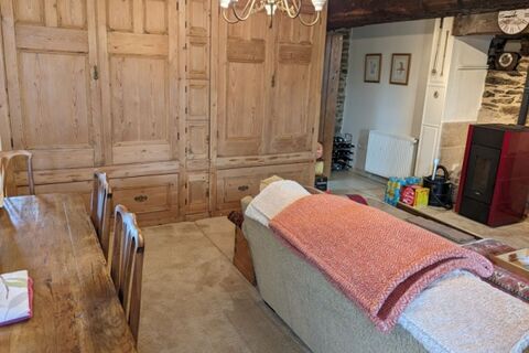 Delightful cosy house, full of charm, providing a nice front room/lounge with a pellet stove, one bedroom with an en suite facility. Fitted/equipped kitchen on summer lounge. Upstairs: Living room, stove, bedroom with private bathroom another bedroom with a lovely view on the garden and the countryside, and a Garage with an attic (water, electricity, drainage). Garden sheds. Greenhouse. Spacious ground of approx. 8457 m2 with ornemental trees and fruit trees. Less than 10 minutes from JOSSELiN or PLOERMEL, and quick access to the RN.24. Authentic charm with all modern comforts! (5.34 % fees incl. VAT at the buyer's expense.)