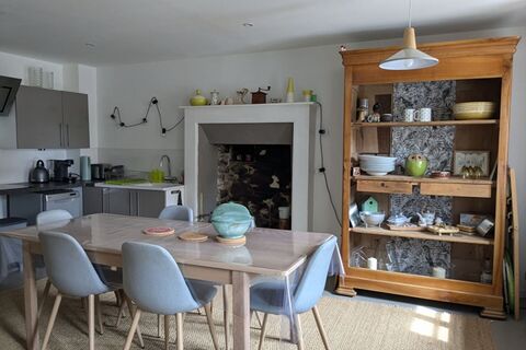 Charming country house for sale near MALESTROIT and ROCHEFORT EN TERRE, renovated with great authenticity, comprising on the ground floor, a dining room with a kitchen area, a living room with an insert, a shower room and WC, a laundry room, a workshop, on the 1st floor, a hallway serving three bedrooms, a shower room and a WC. A garden shed. Plot of land of 440 m2. A visit is essential! (5.50 % fees incl. VAT at the buyer's expense.)