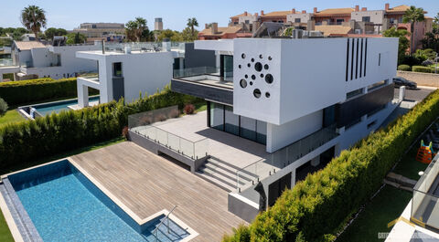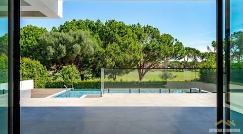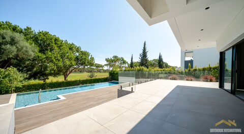 This brand new contemporary villa backs onto the golf fairway with a swimming pool, large basement and garage and open plan living accommodation. Facing the prestigious new Els Golf Course in Vilamoura, the villa features four spacious en-suite bedrooms plus a flexible 5th additional room or a home office. The villa benefits from large windows making it a bright villa and with lots of outdoor space, including terraces and a private balcony with views of the lush fairways. in brief: - entrance hall - visitors cloakroom - open lounge and diner and fitted kitchen - outside kitchen terrace area - laundry room - 4 bedroom suites - 5th bedroom or home office - large basement garage area - swimming pool