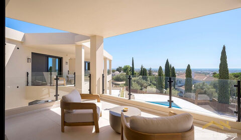 This large 639 m2 villa is a contemporary luxury property built on three levels, featuring 4 luxury bedroom suites and a lower level with a gym, cinema room, and games room. Nestled in the sought-after hills of Vale Formoso, it offers stunning views over the countryside and coastline. The villa comprises an open-plan lounge, dining area, and a state-of-the-art kitchen fitted with premium brands, as well as 4 en-suite bedrooms. The lower level has a wine cellar, laundry, a triple garage, bathroom and space to create a gym, cinema, games lounge or an additional guest suite. Outside is a saltwater swimming pool, several terraces, BBQ and Al fresco dining areas, parking space and gardens. in brief: - lounge and dining area - fitted kitchen - 4 ensuite bedrooms - wine cellar - laundry - triple garage - 1 bathroom - space for an additional suite, gym, cinema or games lounge - saltwater pool - terraces - gardens