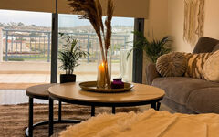A small yet cozy apartment on the edge of a vibrant coastal metropolis, bathed in the soft morning light, evokes a distinct sense of charm. Filled with fresh Mediterranean air, it opens onto a horizon just outside the window. The gentle rustle of curtains on open windows sets an optimistic tone as the suburban landscape awakens in slow motion. A broad balcony, part of a contemporary architectural design, answers the modern resident's need for aesthetic surroundings — long before a single step is taken inside.