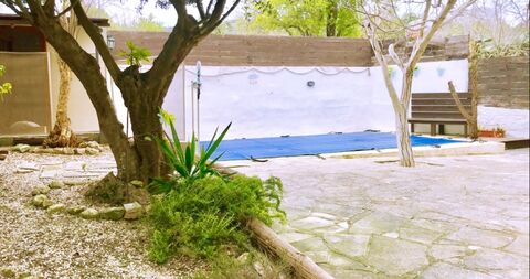 The traditional style and interior design of this villa is a perfect blend of old and modern elements. This gated property features landscaped (low maintenance) garden with extensive grounds, trees, shrubs and curbs surrounding a large rectangular pool, sunbathing area and playground, as well as a Cypriot-style BBQ area with sink and storage space.