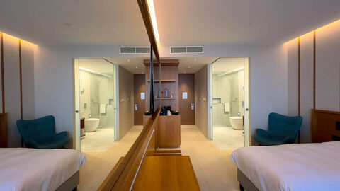 The bedroom is a serene retreat, designed with your utmost comfort in mind. The soft, neutral palette and contemporary furnishings create a tranquil atmosphere, perfect for restful nights. Large windows offer glimpses of the sea, ensuring that the soothing presence of the ocean is always within sight. The en-suite bathroom is a spa-like haven, featuring elegant fixtures, a spacious shower, and luxurious finishes that add a touch of opulence to your daily routine.