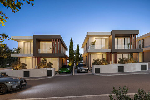 A villa designed in a modern style with classic elements for the plot of land in the village of Chloraka (near Paphos, Cyprus). The house is offered for sale off plan at a very low price.
