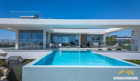 Sea View Contemporary Villa in Lagos West Algarve - A luxurious detached villa set on a 1175m2 plot located within walking distance from several beaches and the historic town centre. This modern property consists of the first floor with a spacious, double-height open-plan living room with a fitted kitchen and a dining area, a cloakroom, 2 bedrooms and 2 bathrooms (all ensuite) and the lower floor offering a large garage, a flexible room with a private shower room (ideal as a guest bedroom), a laundry area and a technical room. Outside, there is a raised, heated infinity swimming pool, a roof terrace ideal for sunbathing or enjoying the sunset from the Jacuzzi hot tub, as well as other terraces, BBQ and Al fresco dining areas, a covered parking area for 3 cars and gardens. in brief: - living and dining rooms - fitted kitchen - cloakroom - 2 bedrooms - 2 bathrooms - a guest bedroom with a private shower room - garage and carport - laundry room - infinity heated swimming pool - roof terrace with a Jacuzzi - terraces - BBQ and Al fresco dining areas - gardens Lagos is one of the most sought-after cities in the Algarve, not only for its golden sandy beaches and crystalline waters but also for the scenic beauty of its bay and its architectural legacy. Start your walk on Avenida dos Descobrimentos, the beautiful waterfront along the mouth of the Ribeira de Bensafrim, which will take you to some of the points of interest in Lagos that are well worth a visit. There is also the Marina, where you can take a ferry/boat and see Ponta da Piedade, which is one of the most beautiful coastal landscapes in the Algarve. A set of wonderful cliffs, caves and arches, rocks that seem to have been carved by hand and small coves and beaches, bordered by a sea of turquoise and emerald tones. Lagos is close to all amenities, public transport, shops, schools, etc. and is situated within a 1-hour drive from Faro international Airport.