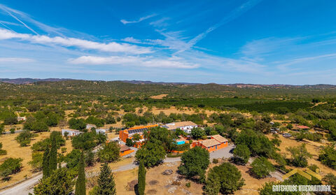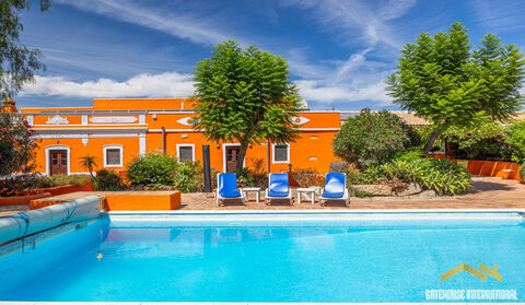 5 Bed Villa Plus 2 Bed Guest Cottage in Sao Bras Algarve - a traditional rustic Portuguese 441m2 property estate with a plot of 4,557m2 with its own borehole with the house with 5 bedrooms plus a separate detached 2 bedroom guest cottage, plus a 9.5m x 4.5m2 heated swimming pool. The farmhouse has charming rustic architecture with modern living, with 5 large bedrooms with 4 bathrooms plus a separate detached 2-bedroom cottage set on either side of a large patio/swimming pool within wonderful mature gardens. The property is located in the countryside, 10 minutes from Sao Bras de Alportel and the local coastline of Fuseta, Olhao and Tavira with their sland beaches. The terrace area is perfect for peaceful relaxation around the pool, with both patio and pool lighting. The property maintains its rustic charm whilst also benefiting from underfloor heating with heat pump, full photovoltaic solar system with batteries, a solar / heat pump hot water system and a heated swimming pool by heat pump. This is also offers a rental return, B&B potential, or wonderful family home with plenty of space for visiting family.