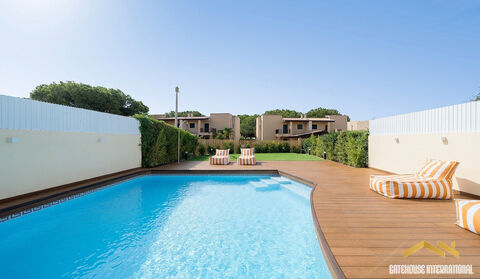 4 Bed House With Pool Near Vilamoura Marina Algarve - this 4 bed 4 bath beautifully presented townhouse with an additional lower level multi-purpose room, its own swimming pool, and centrally located within a short distance to the marina and beach. The ground floor comprises an entrance hall, visitors' cloakroom, a large living and dining room with a fireplace and direct access to the terrace and private pool. There is a modern kitchen equipped with premium appliances and sleek cabinetry, plus a ground-floor bedroom suite. The lower ground floor offers a versatile space, adaptable as a home cinema, fitness area, office, or games room, with the additional benefit of a guest bedroom and bathroom. The first floor has two en-suite bedrooms with fitted wardrobes opening onto private balconies with a nice outlook. Outside, there is a low-maintenance garden with a private pool and lounging areas plus there is private parking. in brief: - entrance - cloakroom - lounge and diner - kitchen - multi-purpose room - 4 bedrooms - 4 bathrooms - swimming pool
