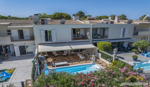 Golf Front 4 Bed Townhouse With Pool in Vilamoura Algarve - A 4-bedroom linked villa spread across three levels, including a basement, located within a short distance from the beach. The house features an open plan fitted and equipped kitchen with living and dining area with a fireplace, 3 bedrooms and 2 bathrooms. The basement level is complete with a bedroom with a nearby bathroom, a spacious garage with plenty of storage and a wine cellar. The outdoor area offers a saltwater pool, BBQ and Al fresco dining spaces and terraces. interior: - open plan living room with with fireplace - fitted kitchen and dining space - 3 bedrooms - 2 bathrooms Basement: - 1 bedroom - 1 bathroom - garage space - storage area - wine cellar Exterior: - terrace - BBQ and Al fresco dining areas - saltwater pool Vilamoura is one of the most prestigious and sought-after destinations in the Algarve, known for its sophisticated atmosphere, world-class amenities, and stunning coastal beauty. Nestled along Portugal's sun-drenched southern coast, this upscale resort town offers the perfect blend of luxury, leisure, and lifestyle. At the heart of Vilamoura lies its iconic marina, a vibrant hub that exudes charm and elegance. Lined with chic boutiques, gourmet restaurants, stylish bars, and luxury yachts, it's the ideal spot to enjoy a stroll, savour exquisite dining, or simply soak in the cosmopolitan ambience. Vilamoura also boasts an array of pristine, golden-sand beaches, including the renowned Praia da Falesia, which stretches for miles along the turquoise waters of the Atlantic Ocean. Whether you prefer sunbathing, water sports, or scenic coastal walks, the beaches offer something for everyone. For golf enthusiasts, Vilamoura is a true paradise, home to several award-winning championship courses that attract players from around the globe. These impeccably maintained courses, framed by lush landscapes, have earned the area a reputation as one of Europe's top golfing destinations. Faro international Airport is only 25 minutes away by vehicle.
