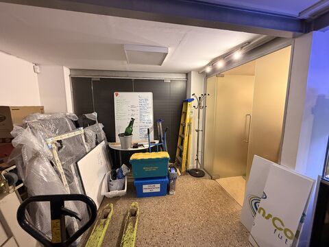 Unit 12 forms part of a mid-1980s portal frame terrace of small business units typically ranging from about 450 to 2,200 sq ft. Unit 12 forms part of a modern light-industrial terrace of steel portal-frame construction with brick and profiled-metal cladding under a pitched insulated roof. The property provides a gross internal area of approximately 1,031 sq ft (95.7 sq m) arranged over ground and part-first floors. The front elevation includes a roller-shutter loading door with separate personnel entrance and a small first-floor window above. The unit benefits from a forecourt parking/loading area directly to the front within the main estate roadway. Internally, the accommodation has been fitted to a good standard, including a ground-floor reception/storage area, fitted kitchen/break-out space, and partitioned first-floor offices with suspended ceilings, inset lighting, and perimeter trunking. The kitchen area is modern with gloss units and worktops, reflecting a higher specification than typically found in small workshop units. Services are understood to include 3-phase electricity, water, and drainage (not tested). The unit is suitable for a variety of E-Class light-industrial, storage, or business uses, subject to any necessary consents.