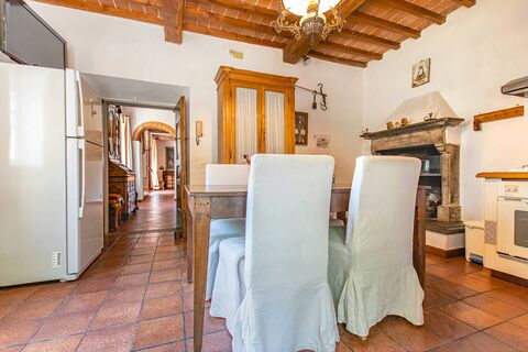 4 bedrooms all with views of the Tuscan countryside and with traditional rustic wood furnishings.