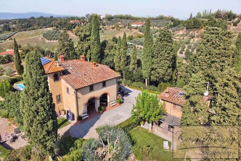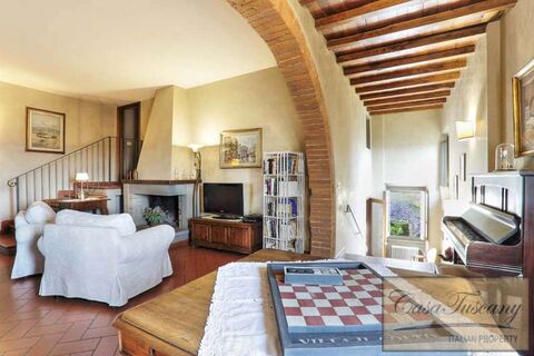 Dating back to the Medieval ages as an original historic watchtower, this impressive villa has been renovated to include all modern comforts and technology such as air conditioning, an automatic entrance gate and solar panels while still maintaining the traditional Tuscan features including large brick archways, exposed stone walls, terracotta floors, and traditional fireplaces.