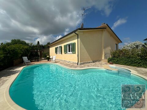 Villa in excellent condition, of 182 sqm, with 3 bedrooms, large living room and loggia, spacious garden with swimming pool and covered parking/cellar of 58 sqm.