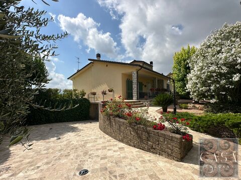 The villa has a garden of about 700 sqm, entirely enclosed and with an electric gate, a pond, and a swimming pool with Jacuzzi.