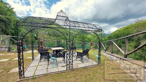 The house is completed by a large courtyard on the main facade with a wood oven, a terrace with access from the kitchen, a spacious and fenced garden of about 500 sqm and a large wrought iron gazebo with wonderful panoramic views.