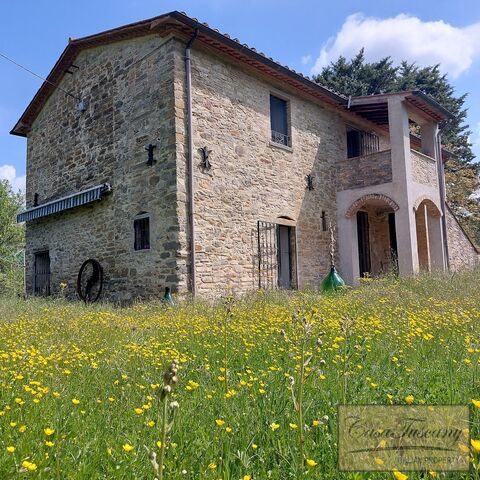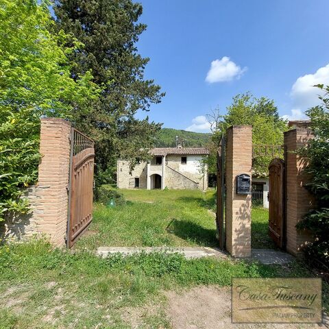Immersed in the green Umbrian hills, we find this splendid real estate complex consisting of an ancient farmhouse dating back to the early 1800s, with a characteristic barn, all surrounded by a private park that extends for about one hectare where there are cherry trees, wisteria, ancient oaks, walnuts, rosemary hedges, wild orchids and the land also produces precious truffles; the park that runs along a river is completely fenced and gated.