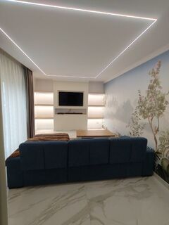 On the entrance floor, there is a kitchen, a large living room with a panoramic balcony, another beautiful spacious room opening onto an outdoor area overlooking the valley, and a bathroom.
