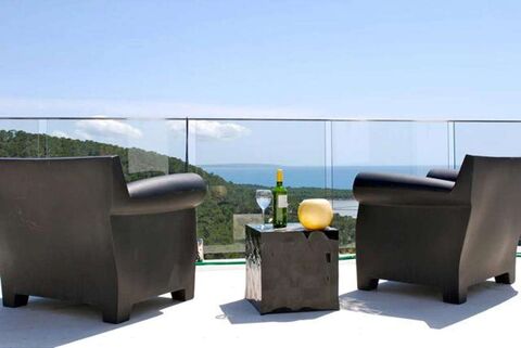 A luxurious, contemporary villa with a lovely garden (approx 800 sqm) with a magnificent pool and great sea views.