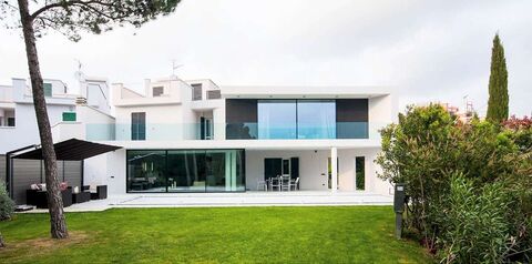Recently constructed, this elegant house has been designed in a beautiful minimalist style, with clean lines, grey tones and great attention to detail. The architecture has been inspired by some of the world's greatest contemporary architects. The master bedroom suite with its parquet flooring, state of the art climate control and bathroom of 40 sqm which includes an outdoor shower, has featured in many architectural magazines for its beauty. The large windows are made of Planitherm glass for climatic efficiency and superb design. The floors on the ground floor are polished concrete or Carrara marble, creating seamless continuity of the interior to the exterior terraces. It is attached to another villa to one side.