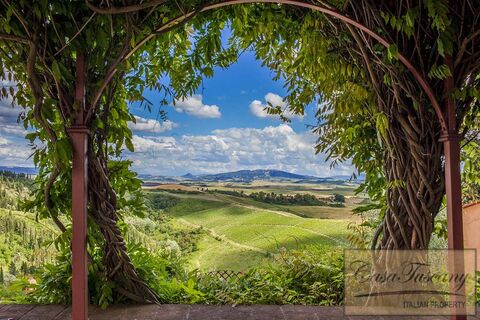 Accessed via 2 arched doors from the house, there is a loggia with a relaxing dining area. There is also a pergola covered in beautiful ancient wisteria, where beautiful scenic views across vineyards and hill that run up to the city of Volterra can be admired.