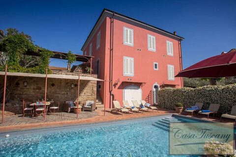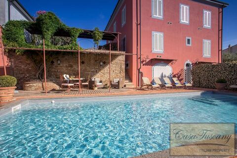 Tastefully restored by a local architect, this stunning luxury town villa with a loggia and a swimming pool offers breathtaking panoramic views over Tuscan countryside.