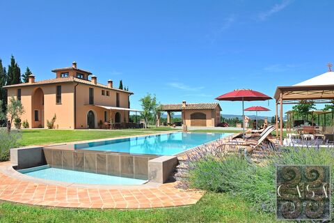 The villa dates back to the 1800s and has been renovated in typical Tuscan style with features such as cotto floors, chestnut beams and stone walls.