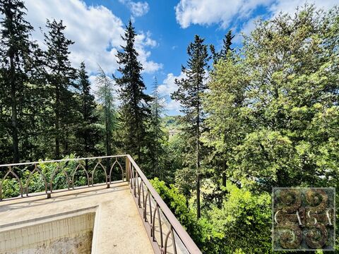 The garden around the villa is convenient and useful for parking several cars, while the storage rooms (total 260 sqm) located partly next to the villa and partly on land further down the valley can be used not only as a garage or other storage, but also as an annex, home, games room or spa with a possible swimming pool (to be built), or even as staff accommodation.