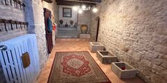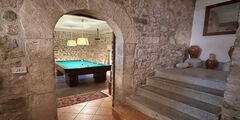 The first room with bathroom, measuring approximately 40 sqm, is located on the ground floor, converted from an old stable, where the original cross vaults, bathroom and Jacuzzi within the suite can now be seen.