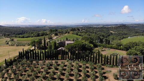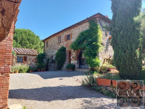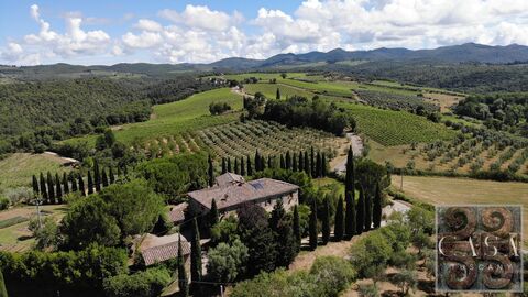 This beautiful property is located along one of the most picturesque roads in Chianti Classico, offering magnificent views of the surrounding hills adorned with famous castles, vineyards, and olive groves.