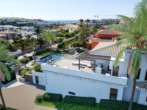 Set on a beautifully manicured low-maintenance plot with lots of mature plants, a south-facing infinity pool, and day-long sunshine.