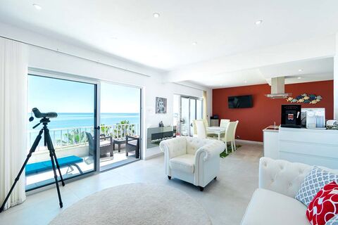 Experience the epitome of coastal luxury in this captivating 2 bedroom/2 bathroom oceanfront apartment in picturesque Quarteira. Perched on the coveted third floor, it offers panoramic views of the majestic ocean, creating a mesmerising living experience.