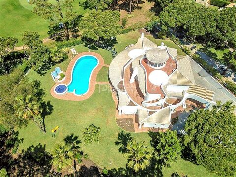 This magnificent imposing villa sits on a large front-line plot with stunning views over the prestigious Pinhal Golf Course in Vilamoura,