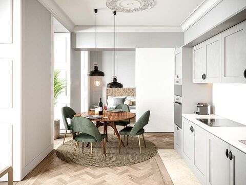 With its mix of classic Portuguese architecture and elegance, this turnkey restoration project is located in Lisbon’s famous Baixa, the capital’s historic centre. Major Lisboeta landmarks such as the Arco da Rua Augusta, Terreiro do Paco, or Sé de Lisboa are steps away, while the neighbouring Bairro Alto and Alfama provide added charm to downtown living.