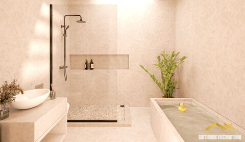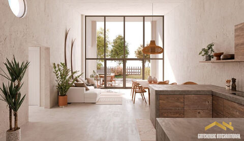 Brand New 2 Bed Eco House Near Lagos Algarve - this 105m2 property with modern social living accommodation, 2 double bedrooms, a stunning high ceiling living room, a roof top terrace and a communal eco pool is located between the spectacular natural park of Barao de Sao Joao and the renowned Espiche Golf, just a short drive from the beaches of Praia da Luz. This eco-luxe development redefines sustainable living with modern design and high-quality, eco-friendly materials. Cerro Mouro consists of three distinct property types, each designed to embrace sustainable living harmoniously with the natural environment. With nearly 50% of the homes already sold, the project is rapidly becoming a success story in the Algarve's eco real estate market. There are currently 9 T2 starting from €500,000 to €520,000 to be constructed during 2025. Features include: Elegant bathroom with walk-in shower Open-plan living room with soaring 5-meter ceiling Fully equipped modern kitchen Large private roof terrace Double-glazed windows for insulation integrated solar panels High-efficiency heat pump Access to a large eco-friendly communal pool Shared vegetable gardens that foster community spirit in Brief: House size: 105 m2 Average plot size: 292 m2 Bedrooms: 2