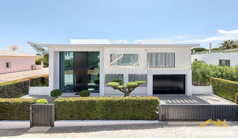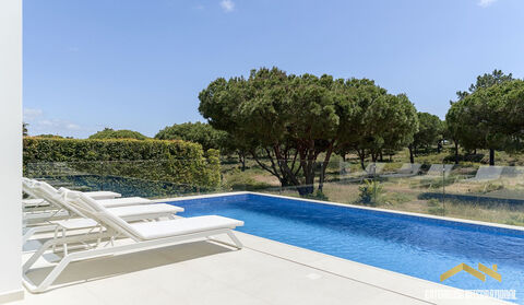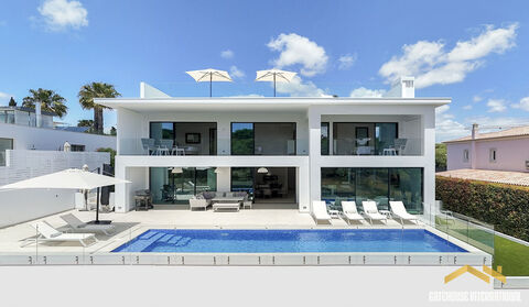 Sea View 5 Bed Villa in Quinta das Salinas Algarve - this new 590m2 villa has a prime position between the resorts of Vale do Lobo and Quinta do Lago overlooking the protected green zone of the Ria Formosa Nature Reserve and just a 5-minute stroll to the beach. This south facing villa has 4 levels comprising of an entrance with floor to ceiling windows and a feature spiral staircase to 3 levels, visitors cloakroom, open lounge, dining and kitchen overlooking the pool, playroom or home office, 5 bedroom suites, basement level with a TV lounge and games area, a further en-suite bedroom, laundry, and storage. There is access to the roof terrace, which features great ocean views. There is gated parking and a single garage. To the rear, there is a private garden and a heated swimming pool. in brief: - reception hall - visitors cloakroom - lounge - kitchen and diner - playroom/office - 5 bedrooms with bathrooms - basement TV games room plus bedroom & bathroom - garage and gated parking - rooftop terrace - swimming pool