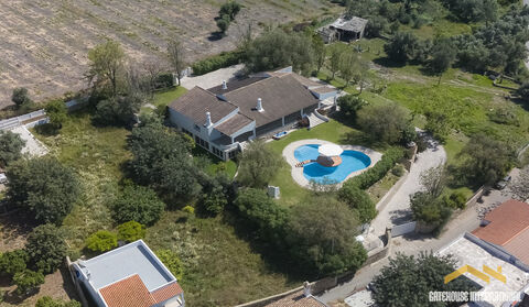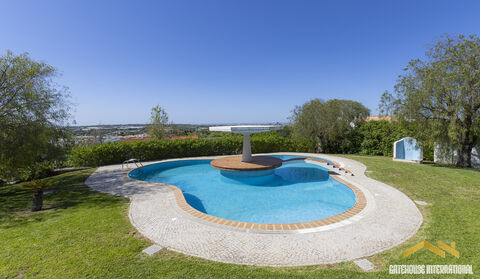 Sea View 6 Bed Villa With indoor & Outdoor Pools in Estoi Algarve - this 4 bed villa has an additional 2 bedroom basement area with a large garage area also, all within a plot of 2,700m2 with both outdoor and indoor pool. The villa features four well-appointed bedrooms on the ground floor, of which two are en suite, ensuring privacy and convenience. Additionally, there are two more bedrooms located in the expansive basement, perfect for guests or extended family. Each bedroom is equipped with built-in wardrobes, offering ample storage space. At the heart of the villa is a luxurious open-plan kitchen, complete with a large pantry to satisfy all culinary needs. The kitchen leads into a large living room, which boasts a cozy fireplace and opens onto a south-facing terrace. Every room in the villa is equipped with air conditioning A dedicated laundry room adds to the convenience of daily living. The villa is designed to cater to all modern needs while maintaining a warm and welcoming atmosphere. The large basement is a highlight of this property, featuring not only two additional bedrooms and a bathroom but also an array of leisure facilities. An indoor pool and a gym offer the perfect setting for relaxation and fitness. Furthermore, the basement includes a large garage and additional space for a game room, ideal for hosting gatherings or family entertainment. Set on a land area of 2,700m2 with a villa construction area of 851m2, the property offers two gated entrances, providing security and ease of access. The expansive grounds offer plenty of space for outdoor activities, gardening, or simply enjoying the serene countryside views.