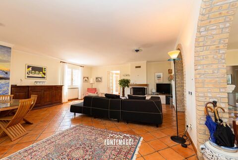 San Costanzo (PU) At 5 minutes by bike from the sea, in a hilly position with 180° panoramic view of the Adriatic Sea, from San Bartolo to Conero, easily accessible and well connected to the main roads. We offer for sale 325sqm villa built in the 90s surrounded by 1500sqm fenced park with swimming pool, garage in the basement and beautiful terrace with sea view. The property is arranged on three floors: On the ground floor of 168sqm we find a spacious living area with a large entrance hall, living room with fireplace, large bathroom, large kitchen with access to two terraces, one equipped as a living room and one as a dining room overlooking the pool. On the second floor of 155sqm the sleeping area consists of two double bedrooms with sea view balcony, twin bedroom, bathroom with shower, living room or fourth bedroom at the need with small bathroom. Adjacent to this floor is a guest area consisting of living area, bedroom and bathroom. Two bodies can be joined and have in ...