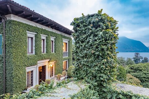 Prestigious historic villa for sale, built around 1900, surrounded by a beautiful centuries-old park planted with camellias, azaleas and tall trees. The entire elegant property is characterized by great elegance and privacy. The prestigious property called Villa "Il Leoncino" is located on the hill of Verbania, in a quiet position, away from the chaos of the city. It enjoys a wonderful view of Lake Maggiore, with a southern exposure. The park of 8,500 square meters, has maintained the historic layout with the avenues that run through it and lead to the swimming pool. During these walks you can appreciate the blooming of the roses. The swimming pool area, built in 2007, has a summer kitchen with a dining table with a lake view and a shower and toilet area. At the entrance of the property in addition to the luxury villa there is the concierge and a very particular guest house developed on two floors with two garages on the ground floor. The external architecture of the ...