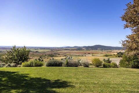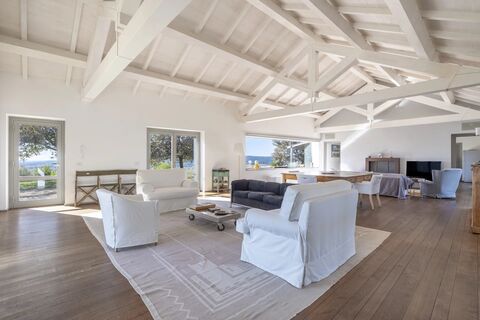 In one of the most authentic and unspoiled landscapes of Tuscany, among the gentle Maremma hills and just a few kilometers from Capalbio, stands this extraordinary villa, nestled within an enchanting olive grove. A residence that captivates with its dominant position, offering breathtaking views of the sea and the island of Giannutri: a panorama that changes color throughout the day, glowing fiery red at sunset. A haven of elegance and serenity, where every detail reflects perfect harmony between nature and architecture. The interior spaces blend harmoniously with the outdoors through pergolas and patios that extend the home's living areas into the open air, creating a flawless continuity between inside and outside. Upon entering, a grand living room with trussed ceilings and large windows opening on three sides welcomes you with light and space. Here, the sitting area, fireplace corner, and dining area coexist in an atmosphere of refined conviviality. Adjacent lies the spaci...