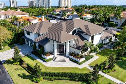 Blending contemporary architecture with lofty urban chic, this dramatic yachting estate offers a voluminous open floor plan with stunning interiors, serene water views, and direct ocean access. A massive glass grid entry with oversized custom double doors...