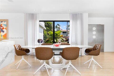 Located on one of the most private and prestigious streets in Miami Beach. Renovated 5 bed/ 5.5 bath home on oversized 11,000 SF corner lot. 2 car garage and 2 separate driveways for parking. Single story renovated modern home, new roof, brand new AC, hurricane impact windows & doors, security and complete savant Av system with Leutron lighting,Italkraft white kitchen, built- in Wolf professional grade appliances, convection steam oven, Italian porcelain countertops, wine cooler with beautiful oversized eat-in island. His and her huge walk in closets in master. Split floor plan, abundance of natural light, floor to ceiling windows. Pool with brand new deck, jacuzzi, cabana bath & built-in summer kitchen with gazebo covering. Entire house water filtration system. Landscape lighting.