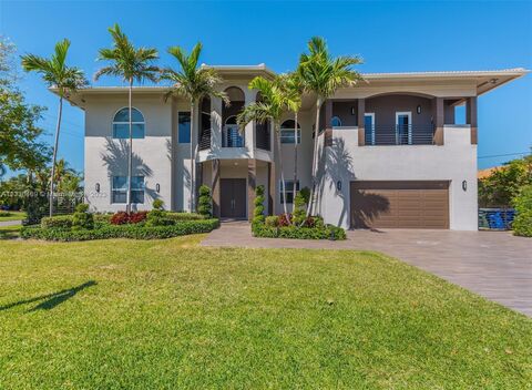 Golden Isles contemporary waterfront home with 85' of waterfront for large yachts. Light & bright interior spanning over 5,400 sq.ft., 7 bedrooms, 5 full baths + home office. Sleek open interior featuring formal dining, family room, living room, entertainers gas kitchen, wine storage, volume ceilings, second story family room, playroom and more. Ample master suite is a luxurious retreat boasting his/her walk-in closets, spacious bath with freestanding tub and separate walk-in shower. French doors that lead to backyard creating a seamless indoor / outdoor living space with heated pool/spa, covered terrace, waterfront gazebo to enjoy alfresco dining, plus dockage for large yacht with deep water and no fixed bridge. Close proximity to Aventura, Bal Harbour and Sunny Isles.